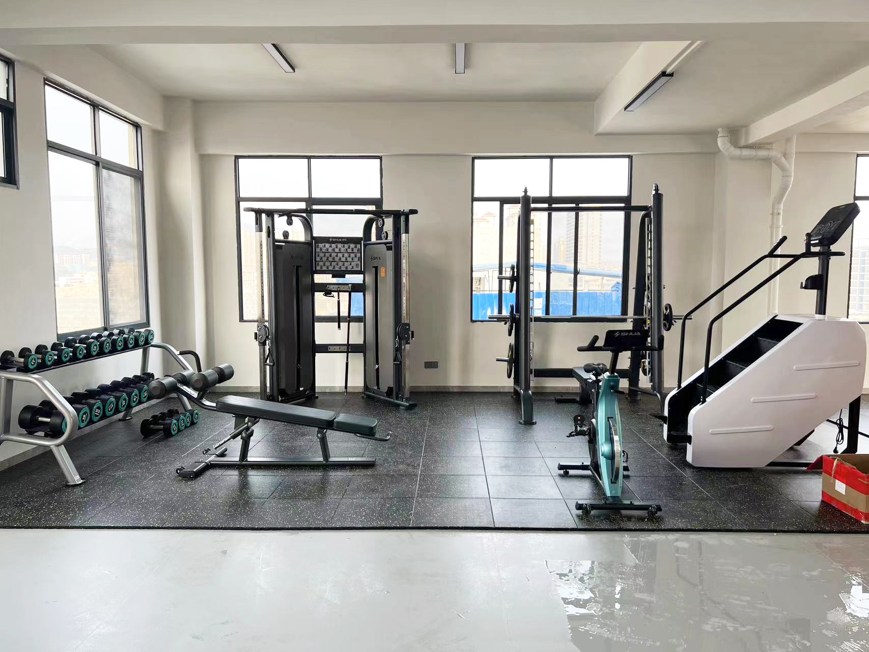 力量器械配置了开元可调式双滑轮多功能训练器(小飞鸟)SH-G6820、史密斯机训练架SH-G6853、腹肌练习椅SH-G6879 、康健10付哑铃套组,依据锻炼方式不同,能够满足日常多肌群训练(胸、肩、背、腿),让企事业职工在有限的器材里能够得到全方位锻炼身体肌肉。让职工身体更健硕,在工作中释放激情活力,打造完美职场形象。在运动过程中增进职工之间的情感交流,促进各部门紧密融合,增强职工归属感,增强企事业的凝聚力。