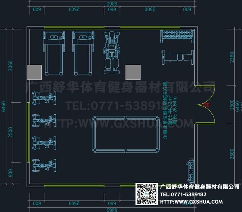 此方案要求面积小于44m²,适用于企事业单位、酒店会所、楼盘社区、工作室等健身场所,能满10-15人同时健身使用。(方案根据场地空间大小、预算、产品需求等进行配置仅为启发性参考)