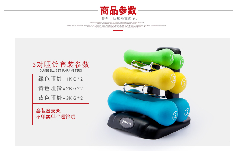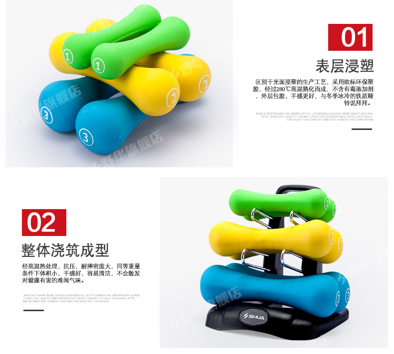 开元SHUA浸塑哑铃套装 家用男士女士健身时尚环保健身运动器材