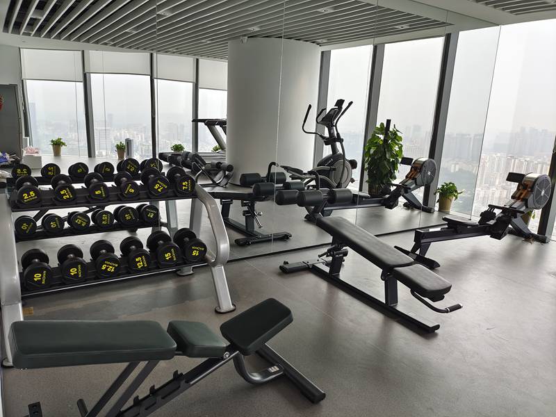 有氧器械配置了开元V9智能跑步机,X5-E椭圆机,商用划船器SH-R8100。有氧运动可以增强心肺功能,提高身体代谢率,消耗体内多余脂肪。新V9商用跑步机具有坡度缓降功能,有助于肌肉与心血管训练,同时具有心率控制功能,随时监测心率,增强跑步体验感。X5-E椭圆机的生物力学设计,通过不受地面冲击的全身运动,能够进行高强度的有氧运动训练,更好的减轻疲劳感且不会对关节产生压力,保护膝关节的同时实现全身性的锻炼。
