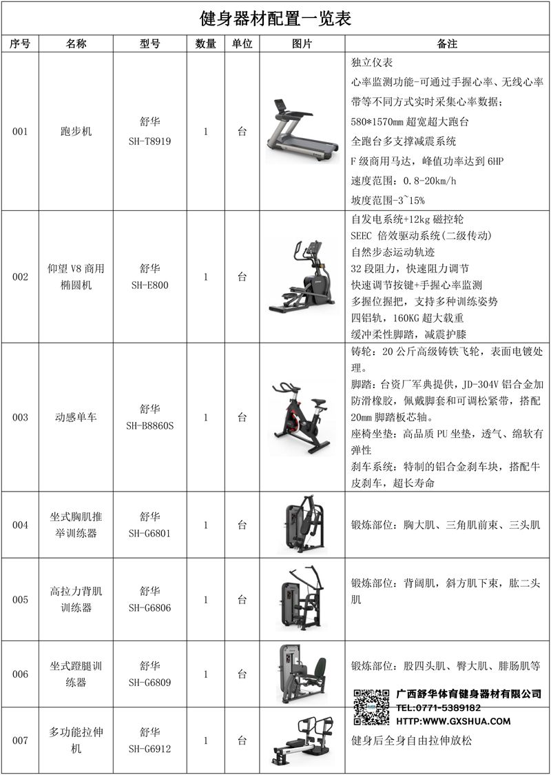 1.开元V9智能跑步机SH-T8919*3台-独立仪表-简洁大气,全新外观设计,健康运动新选择;心率监测功能,可通过手握心率、无线心率带等不同方式实时采集心率数据;580*1570mm超宽超大跑台-跑感舒适,跑台整体安全稳定;全跑台多支撑减震平台,保证跑台超强支撑力,达到180kg支撑,满足专业健身房需求。F级商用马达-超强马达,AC 3.0HP 交流,峰值功率达到6HP,F级商用品质。速度范围达到0.8-20km/h;V9跑步机可实现跑台扬升功能,坡度范围-3~15%,满足客户不同的锻炼需求。