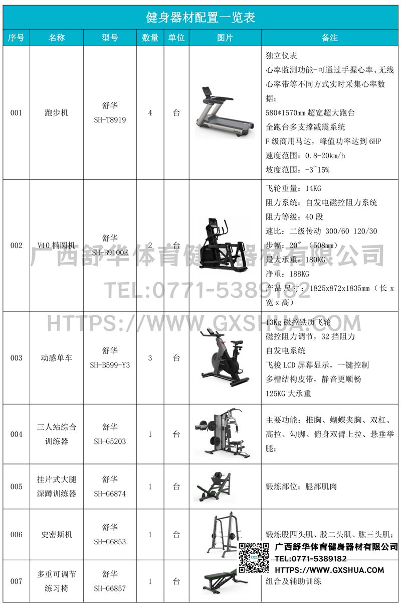 1.开元V9跑步机SH-T8919*4台-独立仪表-简洁大气,全新外观设计,健康运动新选择;心率监测功能,可通过手握心率、无线心率带等不同方式实时采集心率数据;580*1570mm超宽超大跑台-跑感舒适,跑台整体安全稳定;全跑台多支撑减震平台,保证跑台超强支撑力,达到180kg支撑,满足专业健身房需求。